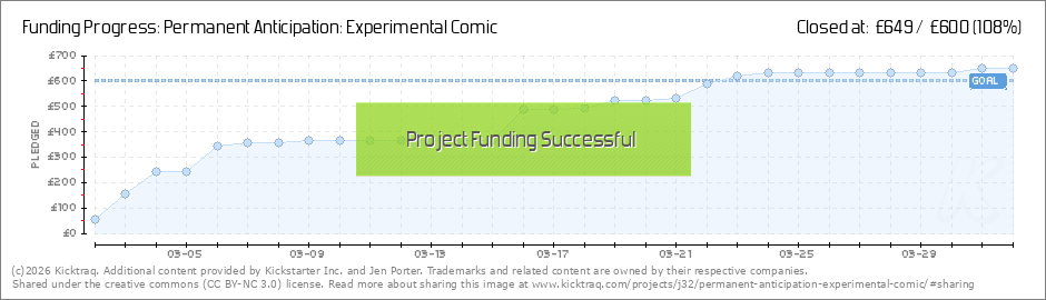 Wow! The update I was always hoping I'd get to send....we did it! Permanent Anticipation is 108% funded- woohoo! It means I can get cracking printing and posting your comics. I can still accept pledges too so if you're checking in and feeling like... (Read More)