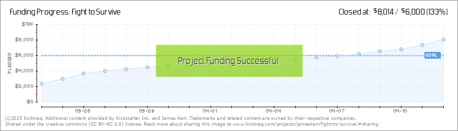With a smash, we have funded! It has been a long hard fight, but we’ve successfully funded Fight to Survive: Role-playing Martial Arts Meets Heart. We took some bruises along the way, and yeah - maybe that arm will never heal right, but you know... (Read More)