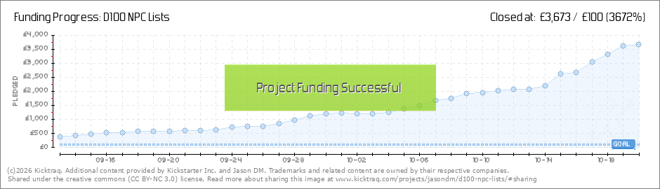 Hi Everyone! Just a quick update as we head into the weekend that we have successfully got 3 NPC lists unlocked as part of this Kickstarters campaign. It is fantastic to see so many of you get behind this project and help bring as many NPC lists to... (Read More)