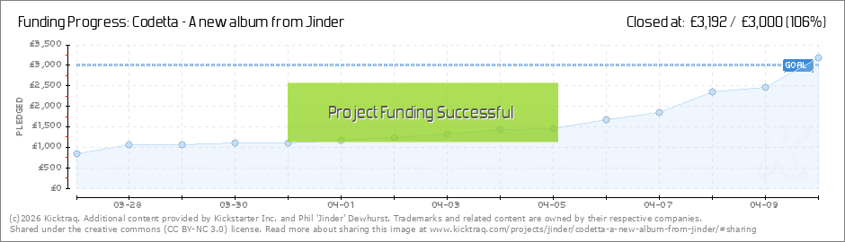 Hello chums, Thankyou so much for all of your pledges-with a week still to run, we’re 39% of the way to our target! Hitting the magic £3k will enable ‘Codetta’ to become a finished reality, in all its stately, shimmering, meta-pop glory…if... (Read More)