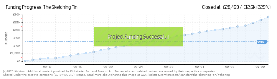 Thanks to all of you, we are over 50% funded! So we are extremely hopeful that we can get these Sketching Tins made. Thanks for all the shares on social media so far. Please keep them coming, we really appreciate it. Thank you all again, best wishes... (Read More)