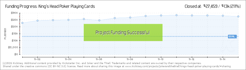 Hey everyone! I want to take a moment to thank each and every one of you for making the King’s Head Playing Cards campaign an astounding success. We hit our funding goal in less than an hour—a record-breaking achievement for Joker and the Thief!... (Read More)