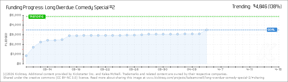 Help your backers reach your daily goals and help others see how you're doing. It's easy, with Kicktraq Mini.Here are a few quick snippits of code you can use to embed your personalized widget on your website, in your blog, and even on your favorite forum.
