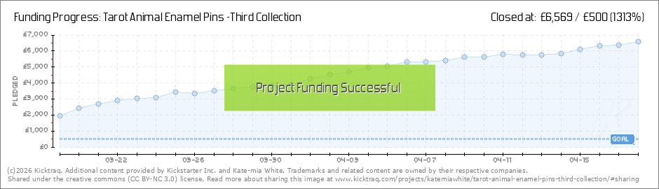Thank you all so much for backing this project and making it a reailty. I’m super grateful that its made target on day one. i’m very excited to be making more tarot pins. once the kickstarter has finished I will keep everyone updated with... (Read More)