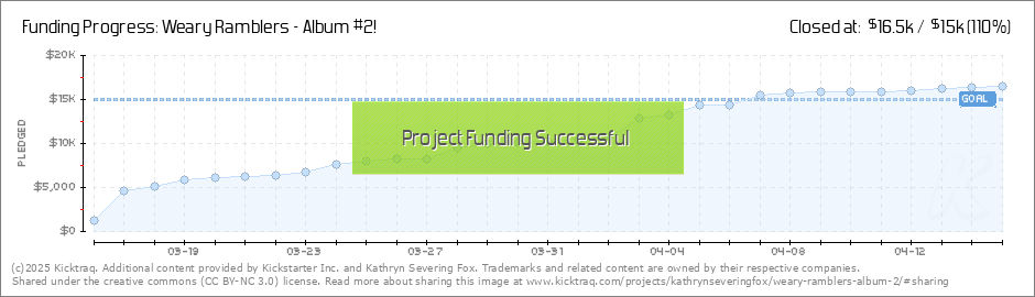 We are in the home stretch this morning! 3 HOURS TO GO!You can still:Pre-order the album, book a concert, commission a song, etc. Thank you to everyone who contributed and shared our campaign for the new Weary Ramblers album! We could not do this... (Read More)