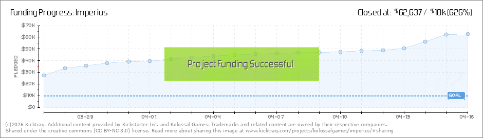 Check out more data at Kicktraq Yesterday was a great first day for Imperius, and we have all of you to thank for that. Your support and enthusiasm around the campaign have been great. Let's take a look at what's been unlocked and what's next.... (Read More)