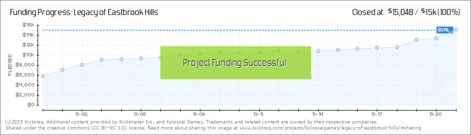 Hello Kolossal Fans and brave investigators! We're thrilled with the launch of Legacy of Eastbrook Hills and the fantastic energy you've brought to the campaign so far! In just the first few days, you've helped us creep up to 30% funded, and we are... (Read More)