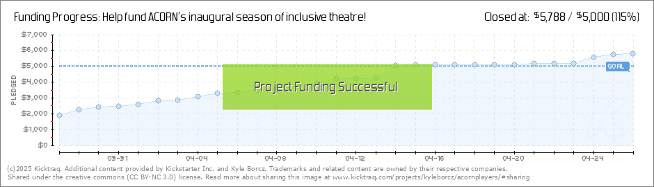 One week left, and we're sitting pretty at 102% - But we are still accepting of donations. All will go into our productions and the running of ACORN Players 100%. Everything not used on this season's productions, will go towards getting our next... (Read More)