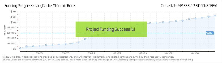 Exciting news- LadyDarke is officially funded! We met the 100% threshold last night, and have in fact notched above it as of this morning (103%!) First and foremost, thank you for backing the comic. We're all very excited to be able to bring this... (Read More)