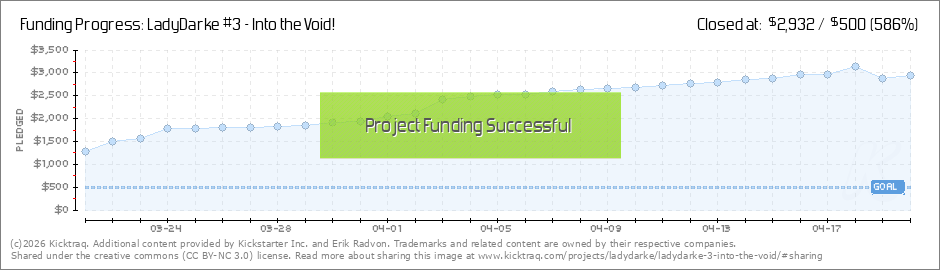 Hi Backers, Due to popular demand, we've added two new reward tiers to LadyDarke #3. New Reward 1: PDF Catch-up Pack - If you missed out on LadyDarke #1 and #2, here's an all-in-one digital edition package to catch up on the entire Darke Beginnings... (Read More)