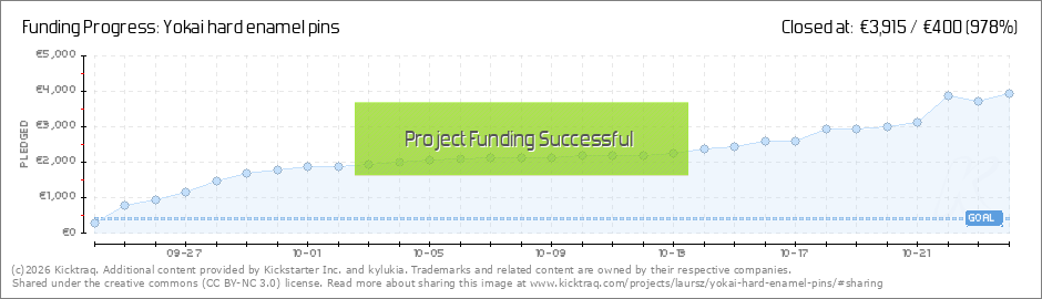 Hi! Thank you so much for the support that I’m having with this project! I’m really glad to know that you like it. At the moment, we reached the three first pin designs and the stickers yay! I’ll make every yokai design in stickers. Next three... (Read More)