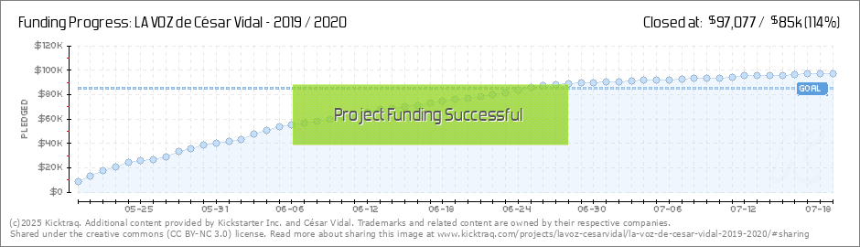 ¡Hola a todos! os estamos agradecidos porque acabamos de alcanzar el 75% del Crowdfunding, por ello os invitamos a escuchar este mensaje de César Vidal: Si no podéis ayudarnos ampliando vuestra aportación, siempre podéis echarnos un cable... (Read More)