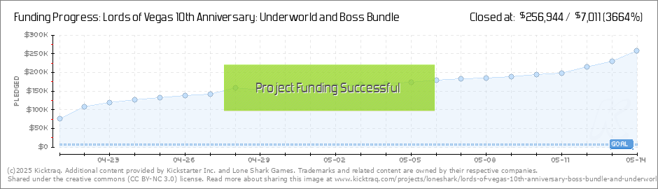 Thank you for a fantastic first weekend on the Lords of Vegas campaign! At nearly 2,000 backers and more than $140,000, we are far ahead of where we thought we'd be at this point. All of us at Lone Shark Games appreciate all your support. We're... (Read More)