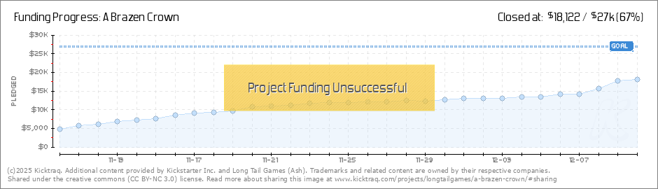 Greetings lost souls - I want to thank everybody who has already joined the campaign! After so long in development, it's exciting to release A Brazen Crown to the wilds of Kickstarter. I always like waiting a day before posting the first... (Read More)