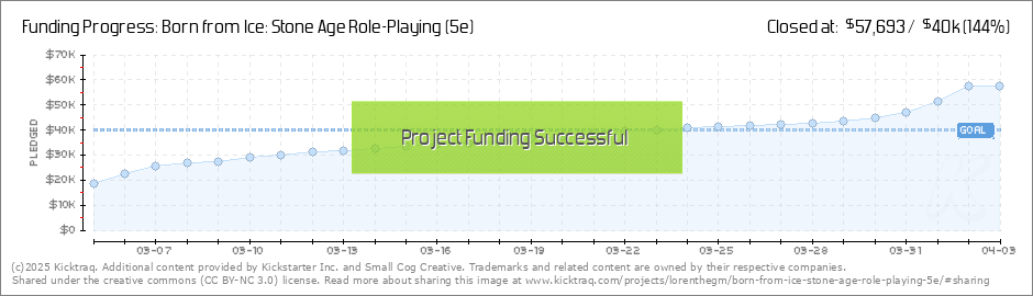 Campaign Halfway Point Update - 90% Funded!Dear Born from Ice Supporters, As we reach the halfway point of our journey together, we're filled with gratitude and excitement. Since our campaign's launch your support has brought us to an incredible... (Read More)