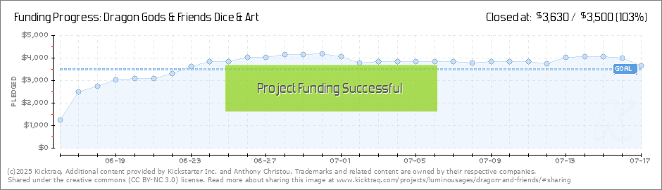 Fantastic news! So soon after reaching our initial goal, we've already hit our first funding goal and unlocked a new dice set option, Captuveri Wolf dice.Don't forget dice sets are available as add-ons, as well as rewards tiers for 1, 2, 3 or even 4... (Read More)