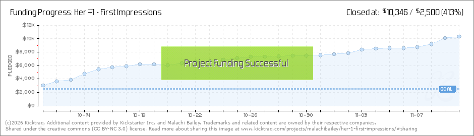 Hello all! We at Wingless Comics wanted to thank you all once again for the tremendous support for HER! As mentioned previously, we met our goal within 6 HOURS! If we reach $5000, I will release Dino Agor's new HER pin-up (below) to all backers!... (Read More)