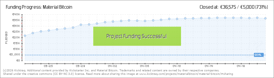 EN: After 28 days the end of the campaign is near. And if you are reading this, it is very likely that you have already contributed through Kickstarter. You should feel proud to be one of the first people in the world to have your Material Bitcoin... (Read More)