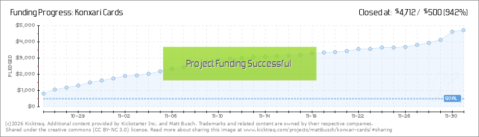 Konxari Cards- FULLY FUNDED IN 10 HOURS! Wow! That is NOT the headline I was expecting to write for the first update! I felt confident that this campaign would be successful, but I certainly didn't anticipate it happening that quick! I'm... (Read More)
