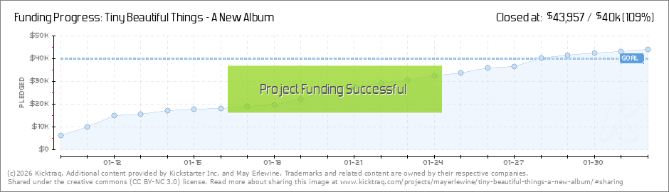 Help your backers reach your daily goals and help others see how you're doing. It's easy, with Kicktraq Mini.Here are a few quick snippits of code you can use to embed your personalized widget on your website, in your blog, and even on your favorite forum.