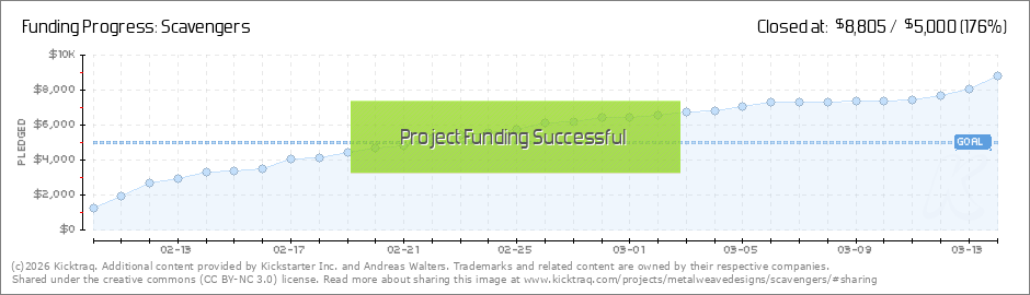 Hey Backers! So far we hit an amazing 145% of our original goal, and we're so excited to see you continue to smash our stretch goals! When we came into this project, we were unsure how popular Scavengers would be and you all have given us some... (Read More)