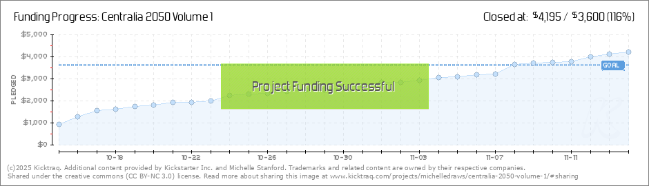 You're probably wondering why I'm updating you twice in one day. Well... � WE'VE HIT OUR GOAL!! � Thanks to you awesome folks pledging and spreading the word, Centralia 2050 Volume 1 will be in print! Let us take this moment to do a little... (Read More)