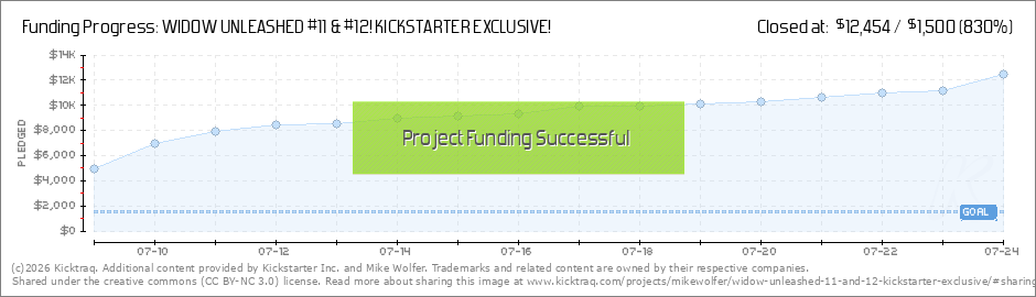 First, a HUGE THANK YOU to everyone who has become a backer on this big first day of the WIDOW UNLEASHED #11 & #12 Kickstarter campaign! So far this has been the second strongest first day of any WIDOW UNLEASHED campaign yet, so I thank you for... (Read More)