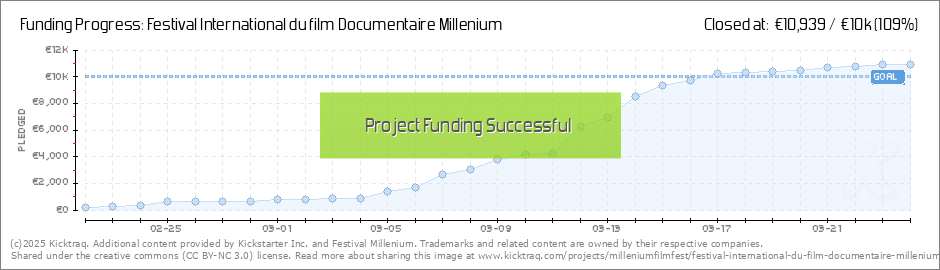 Dear Friends, Many thanks for your help!!! Thanks for believing in Millenium Film Festival. Thanks to you, we have reached our first goal of 10.000 euros. It will help us to finance the travel expenses and stay of ...Lek, the amazing woman... (Read More)