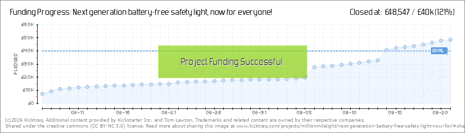 Hi Everyone, We've had a big surge of pledges in the last 24 hours! Thank you! The Safer Roads Foundation have decided to support us by kitting out several schools with our next-generation light and book combo - so a massive thank you to the team... (Read More)