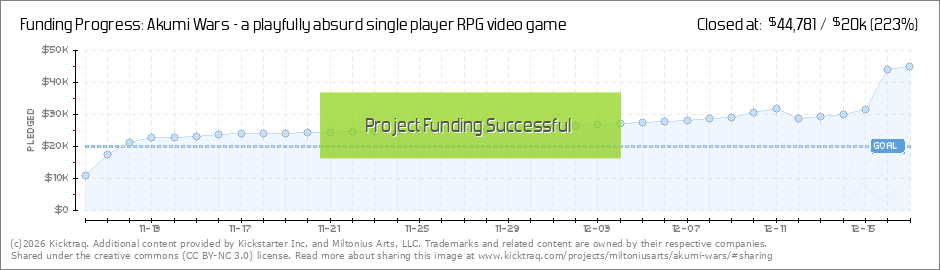 Thank you!!! Akumi Wars funded in 3 days! The game is happening! Thank you for funding Akumi Wars in just three days. Let's GO! Onwards and Upwards yo!!! We have just 14 days left until the Akumi Wars Kickstarter ends. Please tell your friends so... (Read More)