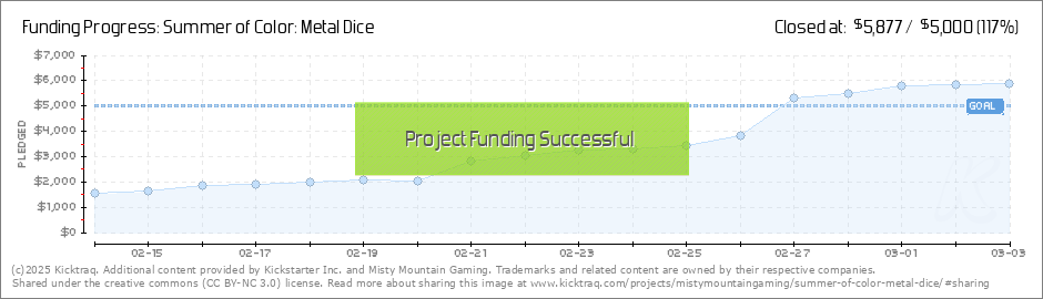 If there’s one thing that almost every tabletop player will tell you, it’s this: you can never have enough dice. Enter Misty Mountain Gaming’s Summer of Colour: Metal Dice. Misty Mountain Gaming‘s Kickstarter highlights 9 different sets of metal dice, with six more sets able to be unlocked the further the Kickstarter goal progresses. (Read More)
