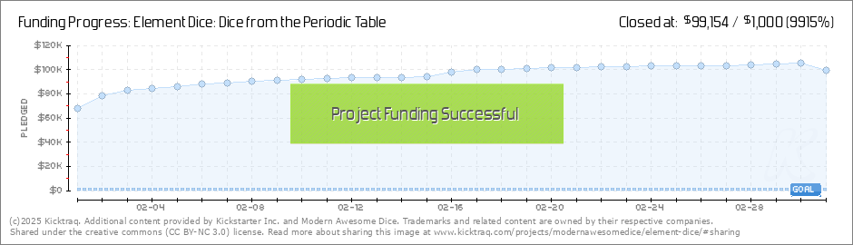 You did it! Polyhedral Element Dice are now unlocked! Woo hoo! The set will include 7 polyhedral dice in total (with one of the D10s as a percentile) https://forms.gle/KnMsx8NjZhQDjXuU8 CLICK HERE to vote for which element you would like... (Read More)