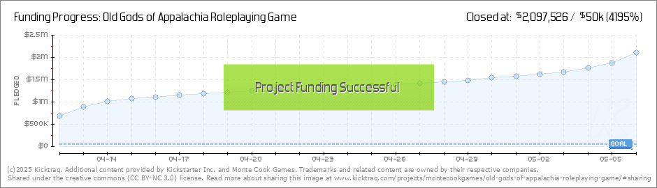 Hello, Family— Thanks to your wonderful support this weekend, we have unlocked yet another stretch goal! The Old Gods of Appalachia Roleplaying Game is getting bigger again, this time with an increase to the number of NPCs detailed through... (Read More)