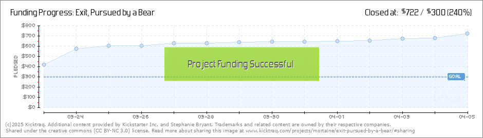 We have 6 hours left in the campaign! Please reshare the link! Tell your friends! Bear Meme! Is this the last of our bear memes? I can only hope to get such glowing reviews for Exit, Pursued by A Bear when it comes out! Bear Review (Read More)
