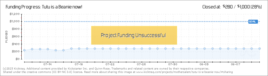Help your backers reach your daily goals and help others see how you're doing. It's easy, with Kicktraq Mini.Here are a few quick snippits of code you can use to embed your personalized widget on your website, in your blog, and even on your favorite forum.