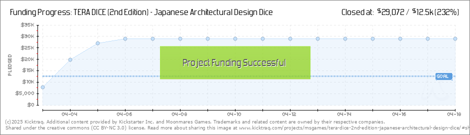Dear Backer Since there is a high demand for TERA DICE, we are providing 100 more TERA DICE sets. Please share this news with someone who wants to grab this last chance of owning the dice. Once again, thank you for your support! Moonmares (Read More)