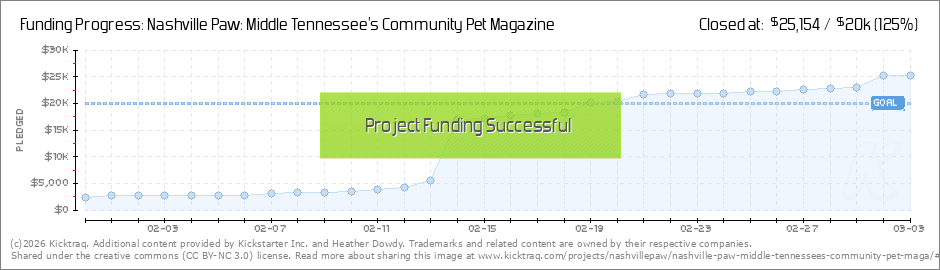 Hello backers! I am VERY excited to announce that the new spring issue of Nashville Paw magazine is now on stands across Nashville at these locations, and thanks to our successful Kickstarter, it is boasting 8 more pages and beautiful coated matte... (Read More)