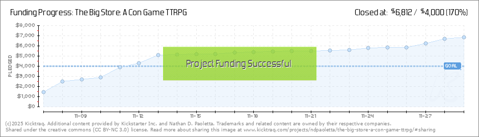 Hi friends, I ran a playtest last week, and I think it's a good way to show what a con game story in The Big Store actually looks like. This is long but if you're interested, I tried to highlight how the mechanics integrate with the storytelling in... (Read More)