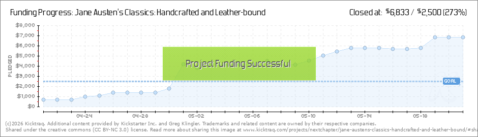We are almost overwhelmed with gratitude. Thank you so much for backing our campaign and trusting us to provide you one or more handcrafted and leather-bound copies of Jane Austen's Classics. We have already started to work toward fulfillment and... (Read More)
