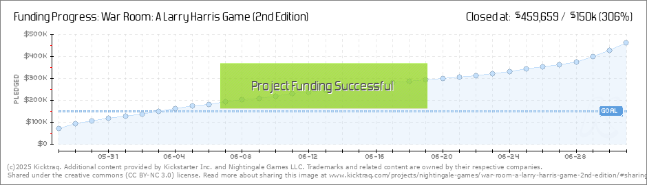 $150K FUNDING GOAL MET Thanks to all the supporters who go us this far! We are now able to print the 2nd Edition of WAR ROOM: A Larry Harris Game and print upgrade kits for owners of the 1st Edition. We will also have some breathing room to... (Read More)