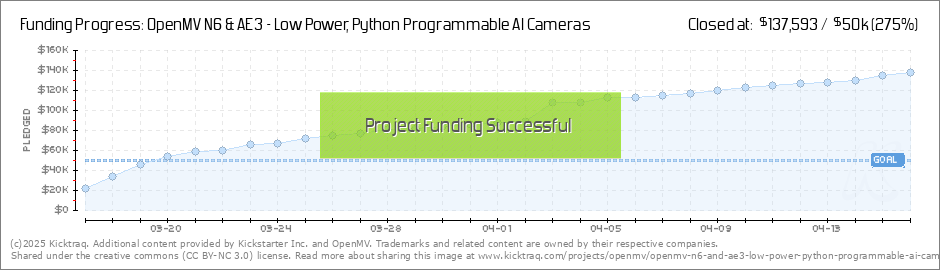 Thank you for supporting the OpenMV N6 and AE3 Kickstarter! We're already over 60% of the way to our goal in 48 hours! Please share the Kickstarter with your friends, family, and co-workers! Let's hit the goal and bust past it! Hackster... (Read More)