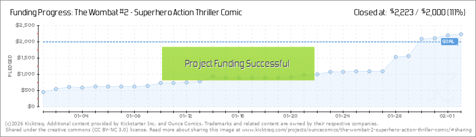 The Wombat #2 - Official Comic Trailer The trailer for the second issue of The Wombat series is live! Watch the epic new trailer on our YouTube channel, or watch it from the campaign page! As we approach the halfway mark on our campaign, we want... (Read More)