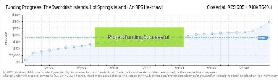 We passed the 50% to goal mark around 4:00am Central time today. Thank you so much everyone! Special thanks if you've told a friend or shared a post somewhere. Here's the full color map Gabriel did of Hot Springs Island, all chopped up into hexes... (Read More)