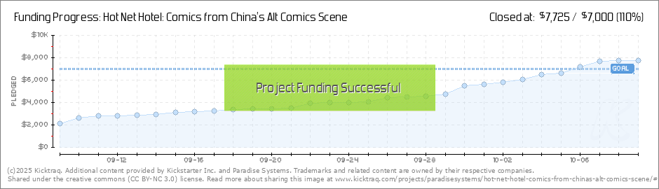 Help your backers reach your daily goals and help others see how you're doing. It's easy, with Kicktraq Mini.Here are a few quick snippits of code you can use to embed your personalized widget on your website, in your blog, and even on your favorite forum.