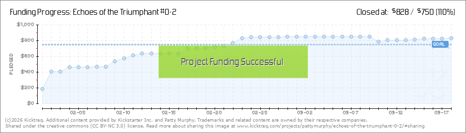 96% Funded! Thank you so much everyone! As of right now, we're 96% funded! We're inches away from being fully funded :) Please share the link to our campaign and you will receive a FREE Echoes of the Triumphant poster!... (Read More)