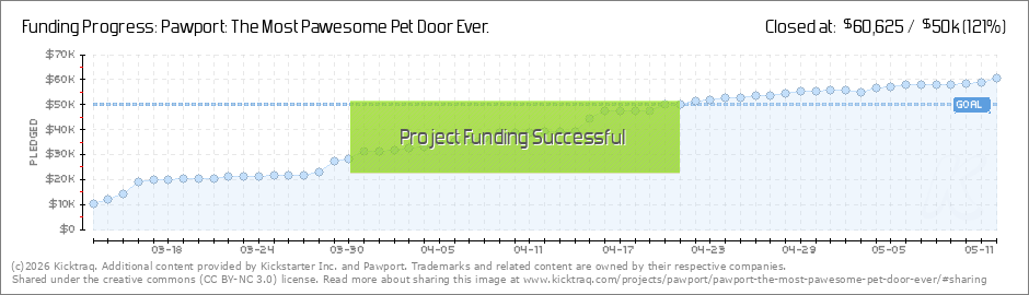 Thanks everyone for supporting Pawport! We are thrilled that we have met our goal in record time. We are excited to continue to work diligently to bring Pawport to market as the best Smart Pet door available. Best Regards, The Pawport Team (Read More)
