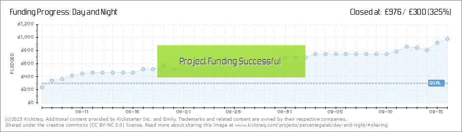 Help your backers reach your daily goals and help others see how you're doing. It's easy, with Kicktraq Mini.Here are a few quick snippits of code you can use to embed your personalized widget on your website, in your blog, and even on your favorite forum.