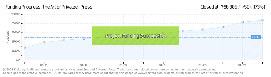Good evening to our many fantastic backers! Thank you for your amazing support and for jumping in early on this project. In just over seven hours, we’ve managed to pass the halfway mark toward funding The Art of Privateer Press! Our first desktop... (Read More)