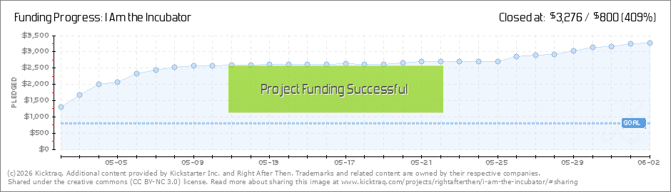 I can't believe the month is soon over and the campaign is coming to an end. Thanks again everyone for backing and being apart of this project. In the last few days, If you would like to help boost "I am the incubator" one last time by sharing to... (Read More)