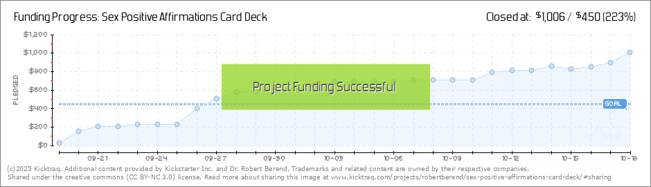 Thank you, everyone, for your support of my sex positive affirmation cards. Infinite thanks to Eve Spencer who made my initial 52 suggestions much warmer and appealing than I was able to do. The goal is within reach--I need less than $100--that... (Read More)